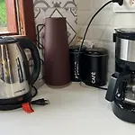 A fully-equipped kitchen, along with a dining area, are available for dining.